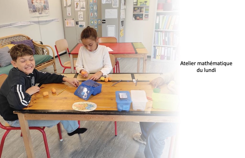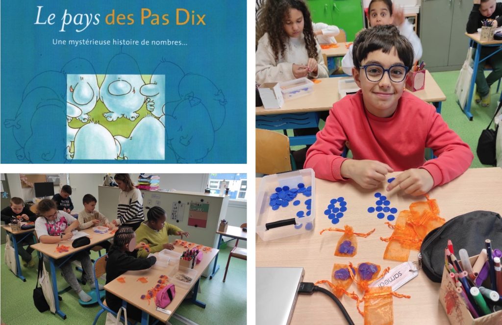 Lors de l’atelier mathématiques du lundi après-midi, nous avons découvert le système de numération en base 10 grâce a l’histoire des Pas 10.