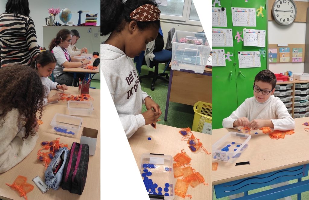 Nous avons ensuite construit des dizaines avec le matériel qui nous permettra de manipuler toute l’année et nous aidera à calculer.