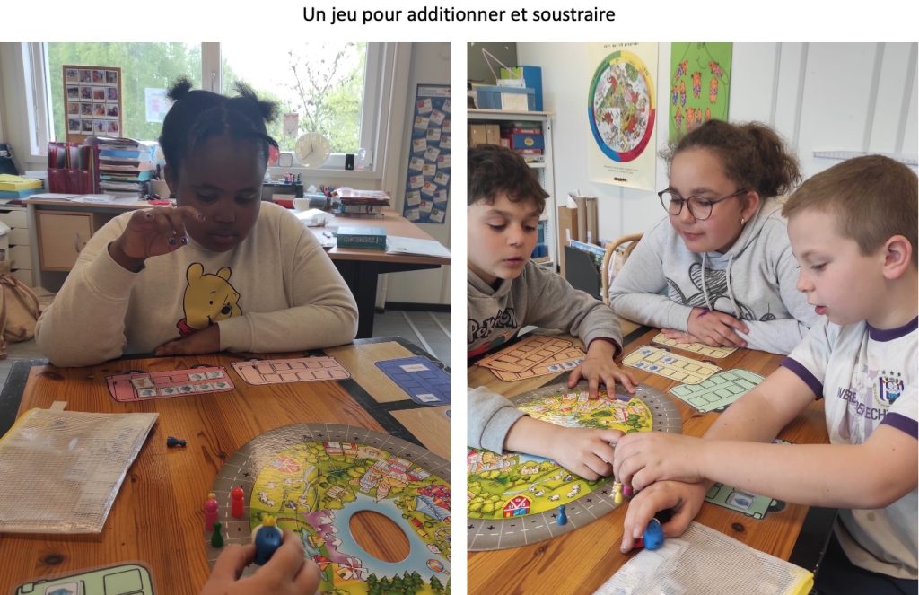 Nous nous entraînons de façon ludique à faire des additions et des soustractions en petits groupes.