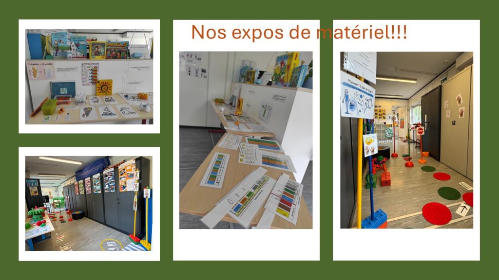 Chez Madame Guénaëlle, on voit les jeux que les enfants font lorsqu’ils vont en logopédie. Chez Madame Carine, on s’exerce au Brain Gym. Chez les Séquoias, on participe à divers jeux et chez les Trèfles, on n’a pas peur de faire des maths!