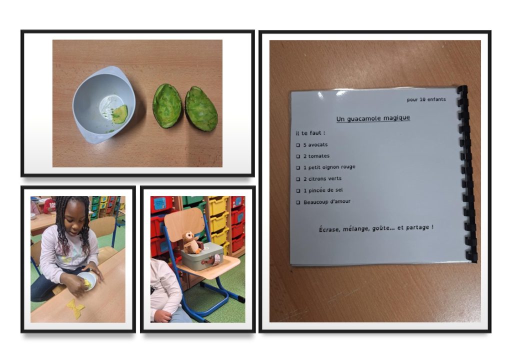 Puis est venue l’heure de la dégustation : nous avons goûté le guacamole ! D’abord l’avocat nature, puis relevé avec des épices… à l’unanimité, un vrai délice !