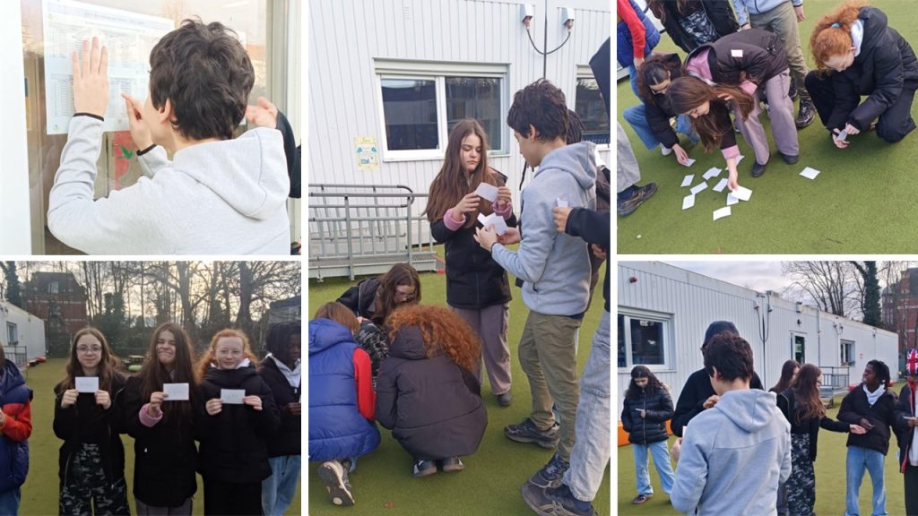 Ce 16 janvier, nous travaillons des notions temporelles avec Madame Frédérique et Madame Caroline. Comme il fait beau direction la cour de récré. Il faut se ranger par âge, du plus jeune au plus âgé. Directement, nous allons voir les dates d’anniversaire pour y arriver. Une des consignes (difficile à tenir), c’est de ne pas parler en le faisant, nous avons eu plusieurs pénalités car impossible pour certains de le faire. Une fois ranger, on nous demande de se mettre par date d’anniversaire selon l’année civile ou l’année scolaire. Dur, dur, dur, il nous faudra revoir les mois de l’année. Ce fut une très chouette activité!