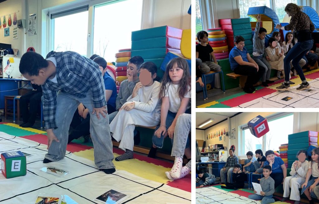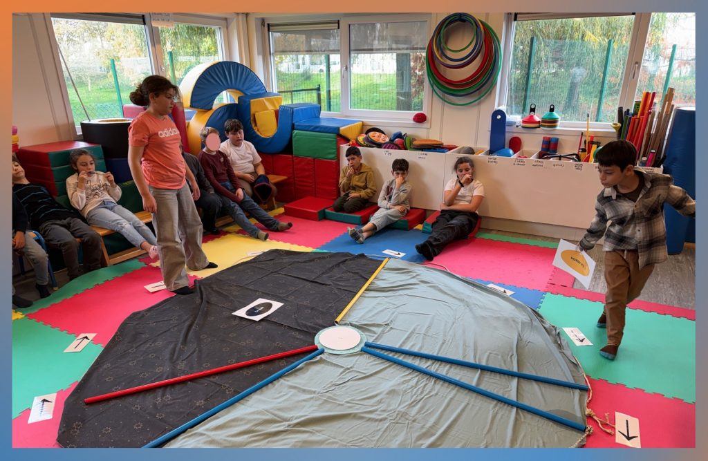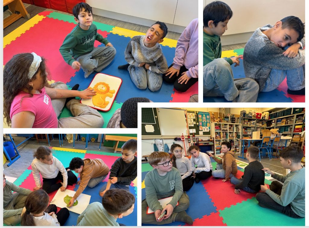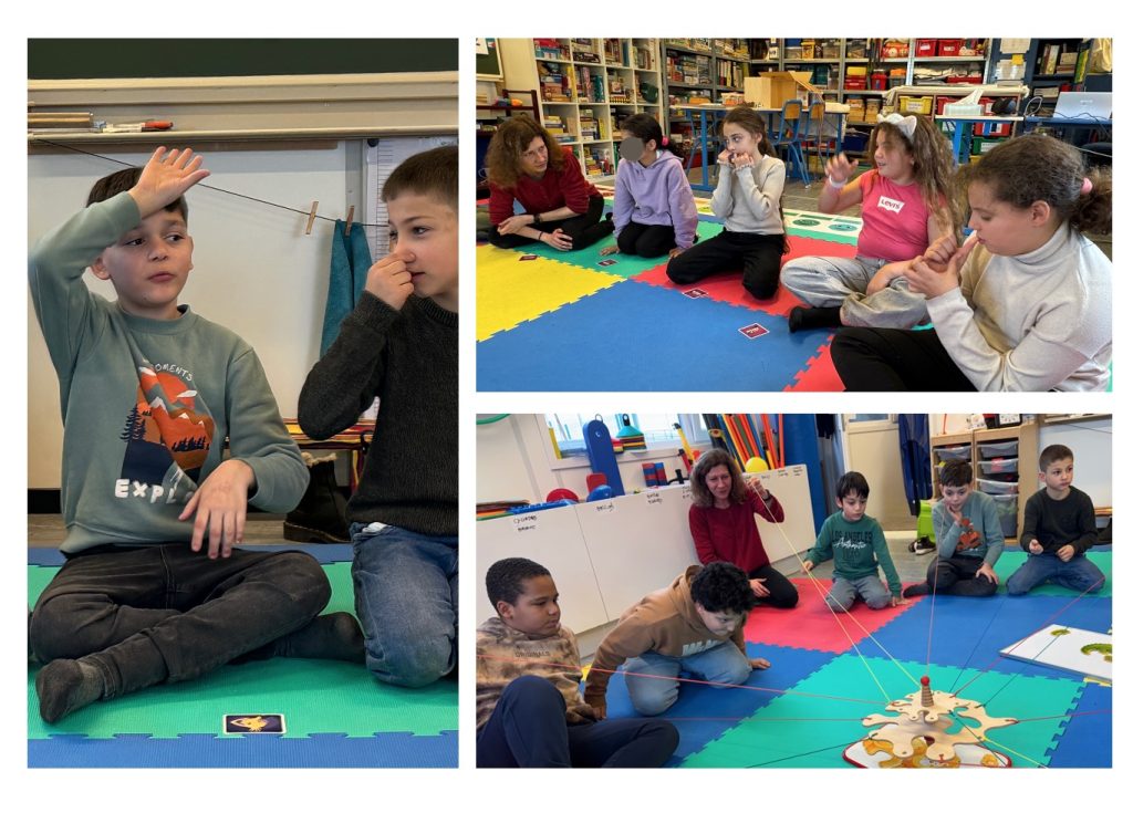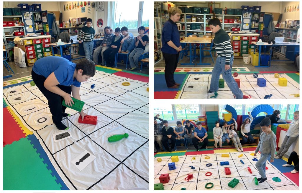 Les élèves de la classe de Mme Joëlle viennent chaque semaine en séance de « psychomotricité, psychomath et apprentissages » chez Mme Isabelle.
