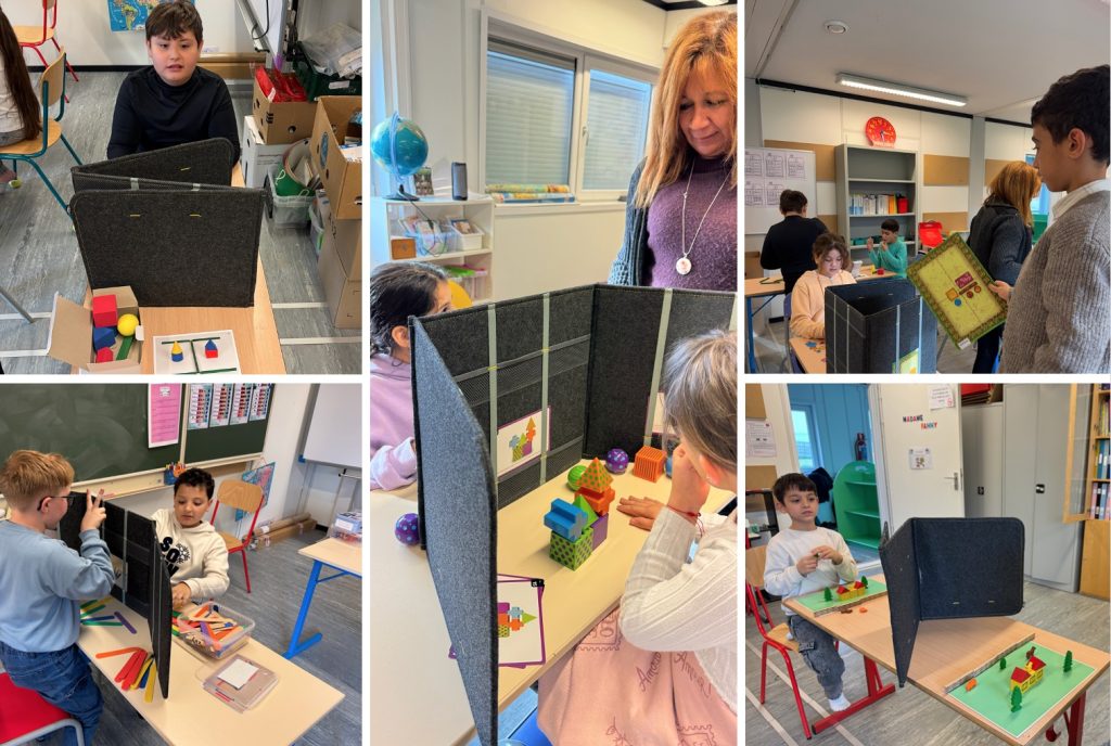 Utiliser des repères spatiaux et du vocabulaire spatial pour décrire les positions des objets les uns par rapport aux autres.