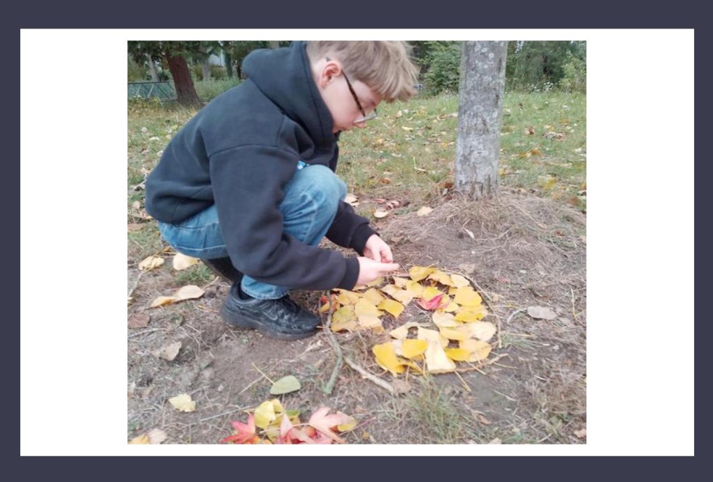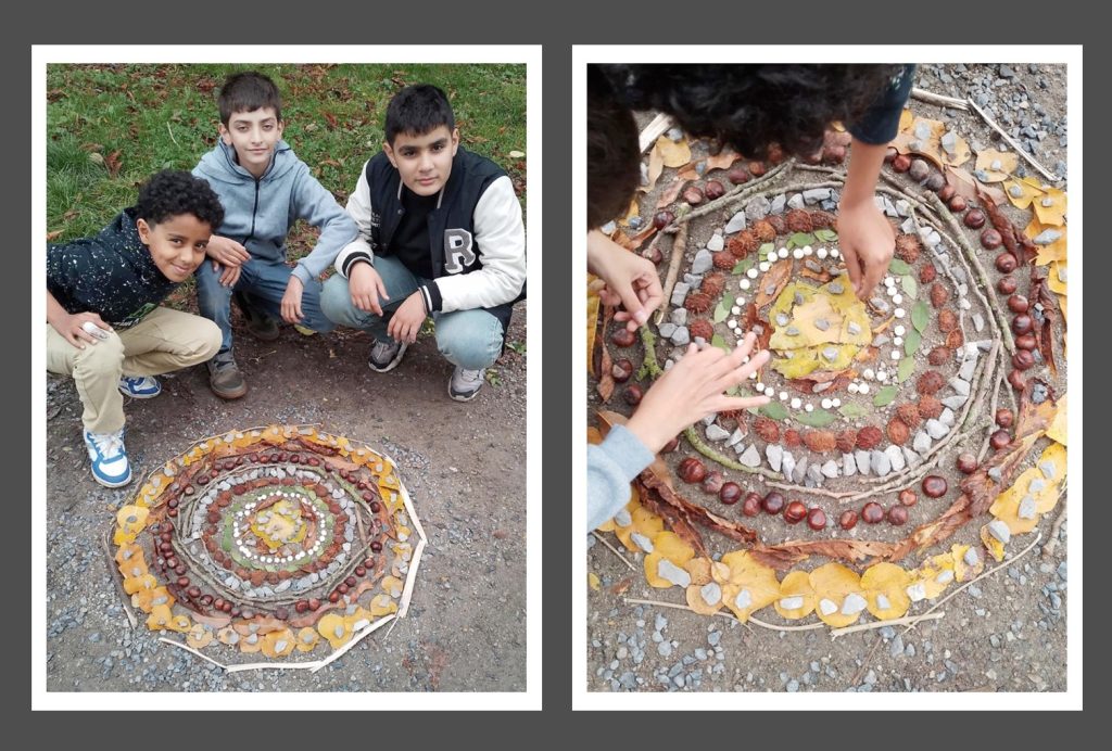 Ils ont créé des formes géométriques (ronds, carrés, triangles) à partir de formes organiques trouvées dans la nature : feuilles, brindilles, écorces, fleurs…