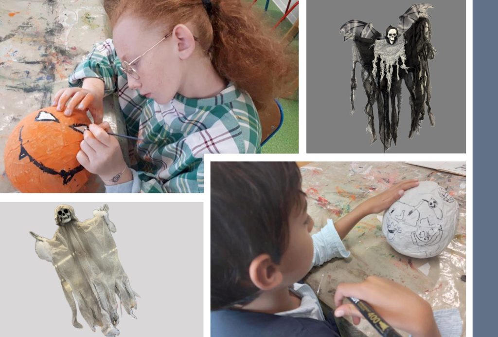 Les élèves ont fabriqué leur seau citrouille en papier mâché, puis l’ont décoré aux couleurs d’Halloween.